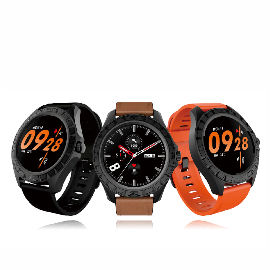 1.3”全圓全觸顯示屏 獨(dú)家個(gè)性化精美表盤,且APP能推送 24 H連續(xù)實(shí)時(shí)動(dòng)態(tài)心率 300mAH大容量電池,續(xù)航時(shí)間達(dá)15天以上 支持23種多運(yùn)動(dòng)模式 支持17國的本地化UI語言 支持IP68防水級別 搭配皮質(zhì)表帶和TPU表帶,兼顧商務(wù)和運(yùn)動(dòng)風(fēng)格 可接受為客戶免費(fèi)定制表盤,彩盒包裝,表帶顏色,表扣鐳雕LOGO內(nèi)容